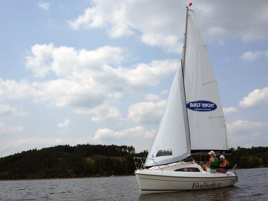 Půjčíme vám plachetnici na Orlické přehradě u které nepotřebujete průkaz vůdce malého plavidla, ale pokud si na to netroufnete, na zážitkovou plavbu vyrazíte i s kapitánem. Ovládat plachetnici zvládne po instruktáži každý, nabízíme kajutovou plachetnici pro 4 osoby, ideální jako dárek pro celou rodinu.