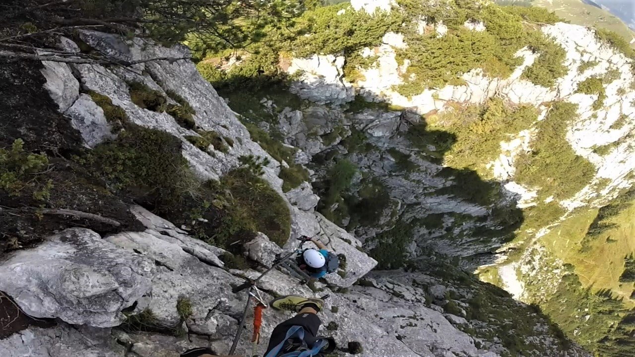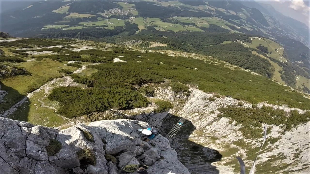Donnerkogel se nachází v pohoří Dachsteingebirge u jezera Gosausee. Ferrata vede až na vrchol Grosse Donnerkogelu do výšky 2055 metrů, z vrcholu se nabízí nádherné výhledy na jezero a na masív Dachsteinu včetně jeho nejvyššího vrcholu. Obtížnost ferraty je hodnocena stupněm C/D, dle mého názoru, je to odpovídající. Vrcholem ferraty je 40 metrů dlouhý lanový žebřík, úžasný zážitek.
