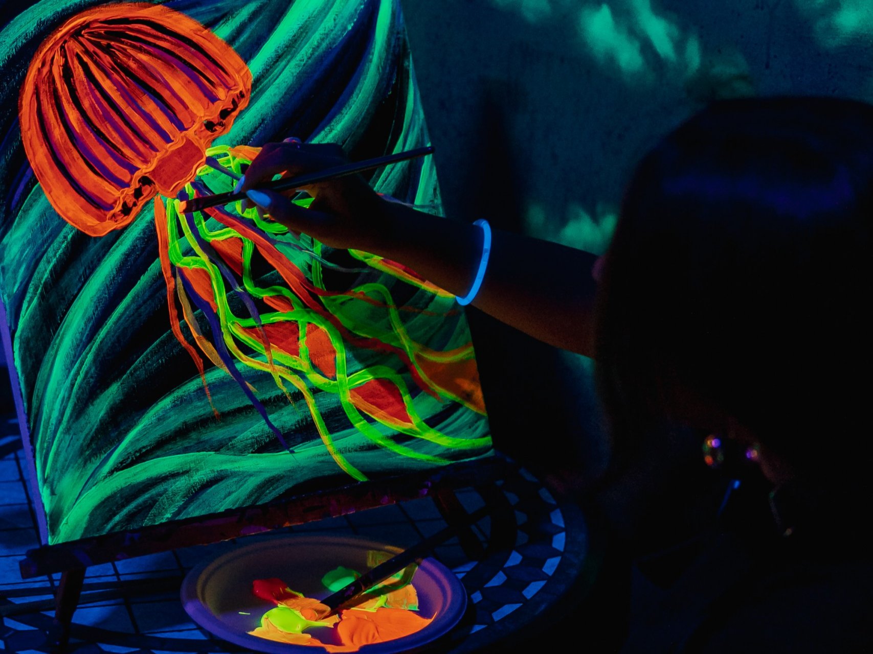 Vyzkoušejte si ArtNeon - nový neobvyklý zážitek malování ve tmě. Pomocí speciálních svítících barev spolu se zkušenými lektory vytvoříte obraz jako z kouzelné říše divů! Zážitek se hodí pro úplné začátečníky i ostřílené umělce.