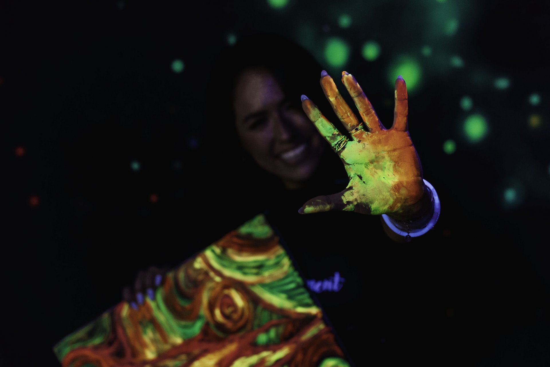 Klasické malování se štětci a barvami na plátno? Ne tak docela! Na ArtNeon vás čeká kreativní hra barev, světel a tmy. Neonové malování probíhá téměř v úplném šeru pod jemným UV světlem. Za použití barev s luminiscenčními pigmenty vytvoříte vlastní obraz, který se ve tmě efektně rozzáří. Užijte si luxusní zážitek plný umění i pohodové atmosféry.