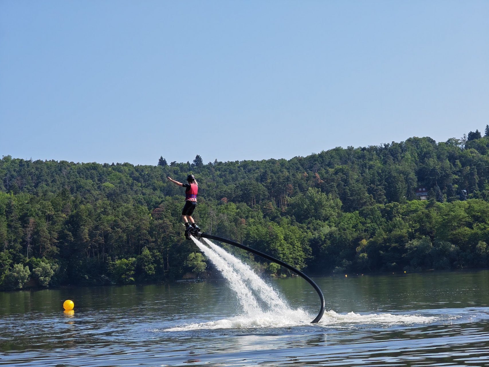 Flyboarding není náročný jak na první pohled vypadá, zkušený instruktor poradí správnou techniku letu. Jedná se o zcela bezpečný sport, nicméně každý účastník musí umět alespoň trochu plavat. Doprovod je povolen v rozumné míře, od břehu jezera může celý průběh letu pozorovat.