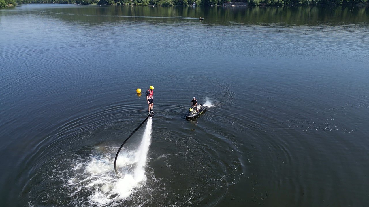 Flyboarding v Ejpovicích u Plzně je adrenalinové létání nad vodní hladinou za pomocí flyboardových bot. Stačí si boty obout a rázem se budete vznášet nad vodou. Flyboardové boty jsou poháněné proudem vody, což umožňuje kromě létání nad vodní hladinou, také potápění a rychlé vynořování.