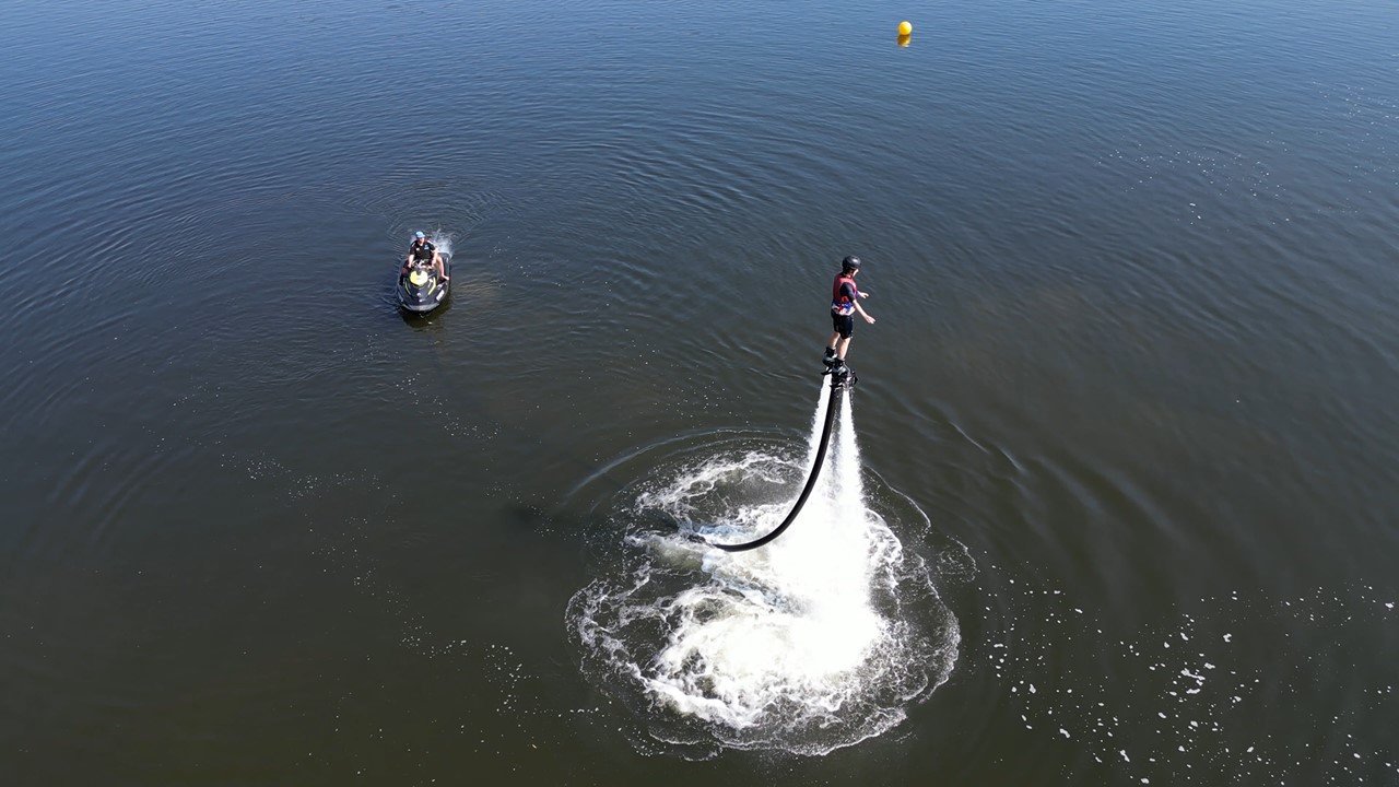 Flyboard jsou speciální boty umožňující létání nad vodou a potápění. Flyboard je napojen 18ti metrovou hadicí na vodní skútr, který vhání pod tlakem vodu do trysek pod flybordové boty. Tento systém umožňuje létat nad vodou a potápět se ve stylu delfínů. Výkon flyboardu reguluje instruktor pomocí plynu na skútru.