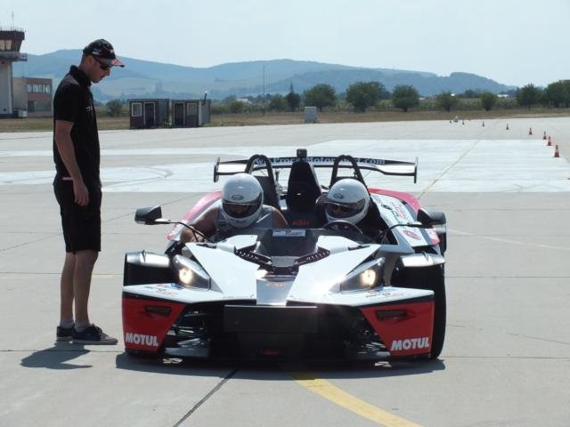 Ve smluvený termín se dostavíte na letiště v Trenčíně. Na místě vám zapůjčíme helmu a kuklu. Po základním zaškolení vás instruktor usadí do kokpitu KTM a připoutá bezpečnostními pásy. Veškeré vlastnosti KTM dokonale otestujete v techničtější části letiště, naopak na rovince zažijete brutální zrychlení. Po celou dobu jízdy je s vámi na sedadle spolujezdce instruktor, který dohlíží na to, abyste si zážitek bezpečně užili na maximum. Letiště Trenčín je ideálním prostorem, kde si speciál můžete vyzkoušet na plný plyn, tedy pokud na to budete mít odvahu :-).