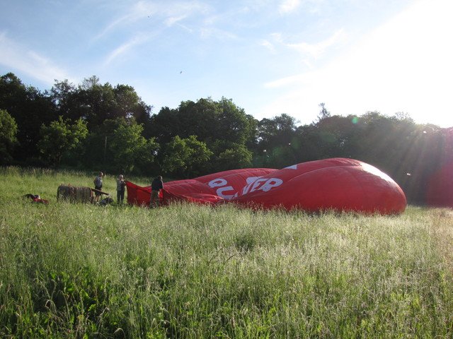 Přibližně po hodině následuje přistání. Záleží na vhodných podmínkách, aby se k balónu dostalo doprovodné vozidlo, které po celou dobu balón sleduje. Po přistání se jednotlivé díly balonu zabalí na vozík doprovodného vozidla. To vás pak odveze zpět na místo startu.
