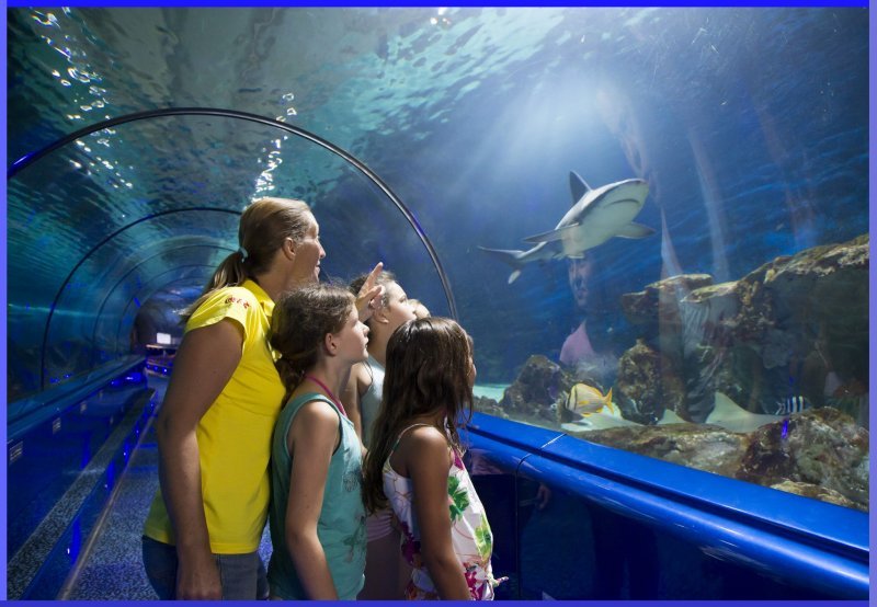 - Žraločí tunel: působivý 30m dlouhý žraločí tunel, který prochází obřím akváriem, vám umožní pozorovat celkem 3 druhy žraloků
