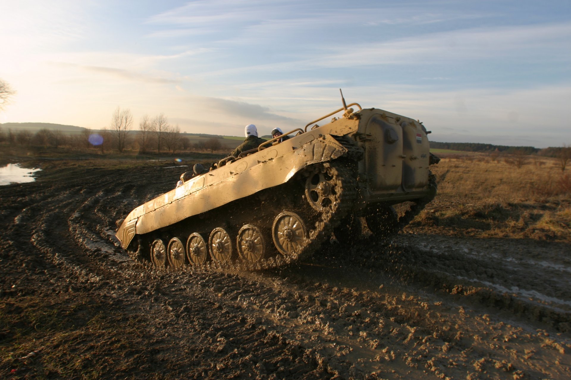 Super jízda v bojovém vozidle (svezení i řízení) za účasti sympatického pana instruktora. Na zážitku přidaly hluboké jámy plné vody po dešti, se kterými si BVP samozřejmě hravě poradilo :-)