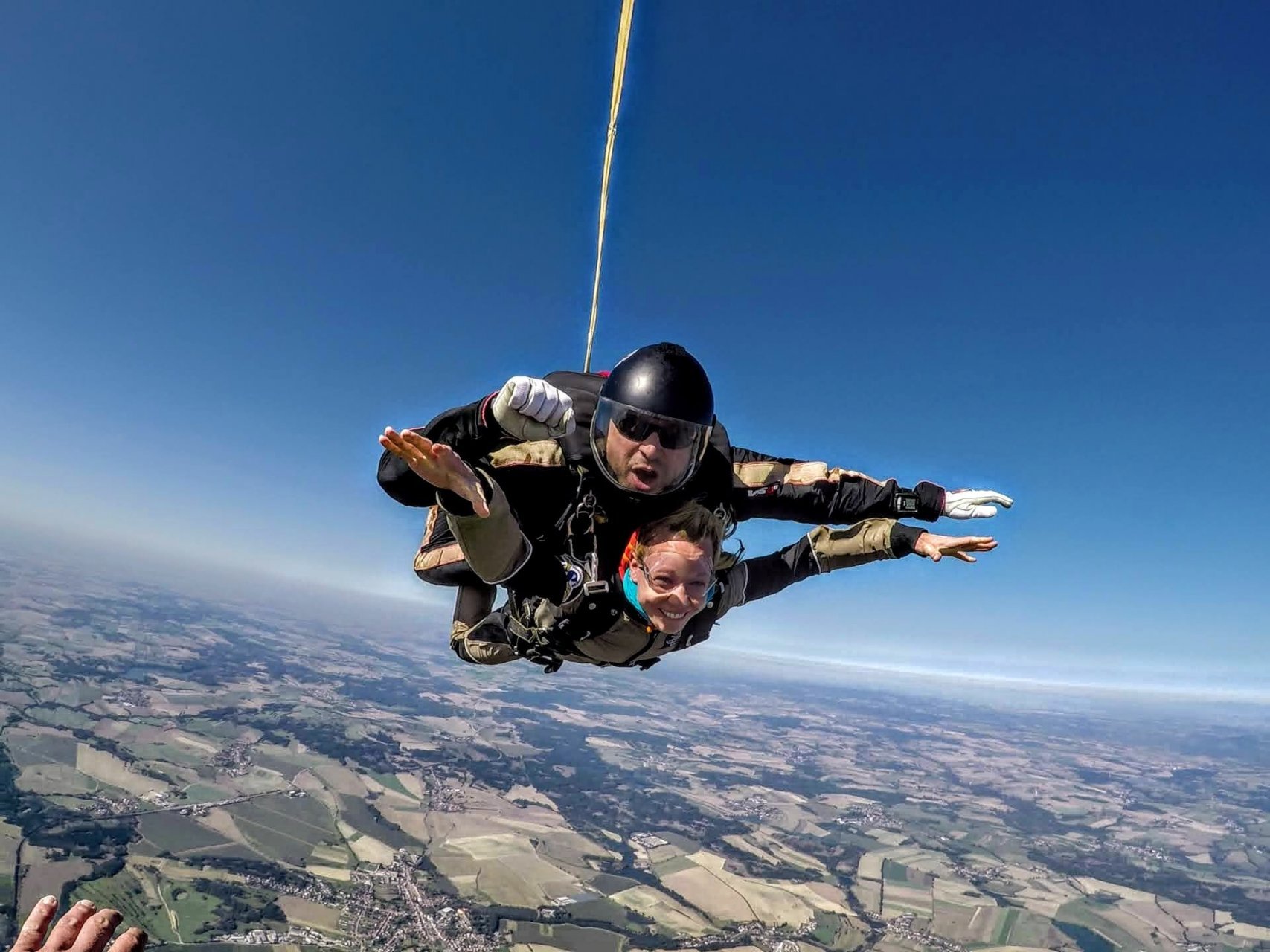 S letadlem vystoupáte během 30 minut do výšky 3 000 - 4 000 metrů... Teď přichází ta nejkrásnější část celého seskoku, zažijete cca 1 minut volného pádu. Jedinečného pocitu, kdy se vznášíte ve stavu beztíže a při tom se řítíte k zemi rychlost přes 200 kilometrů za hodinu! Adrenalin i euforie dosahují v tu chvíli maxima.! Ve výšce 1500 metrů nad terénem tandemový pilot otevře hlavní padák. Od této chvíle letíte jen tichým nekonečným prostorem. Tandemový padák můžete sami řídit až do výšky 300 metrů nad terénem, kde si řízení opět převezme tandemový pilot, aby s vámi hladce a bezpečně přistál.
