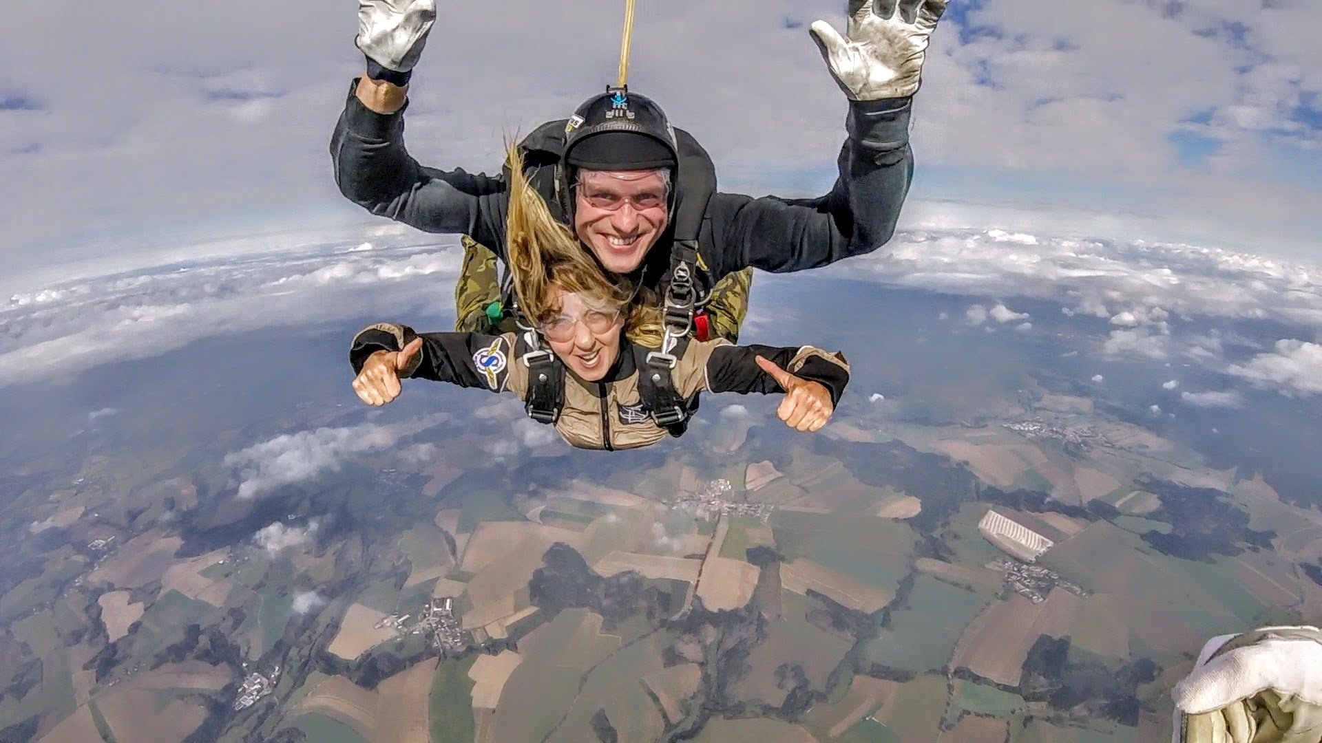 Veškeré vybavený pro tandemový seskok (kombinéza, kukla a parašutistické brýle - vhodné i přes dioptrické brýle) vám zapůjčíme. Pod kombinézu doporučujeme pohodlné sportovní oblečení a pevnou obuv bez háčků, např. tenisky.