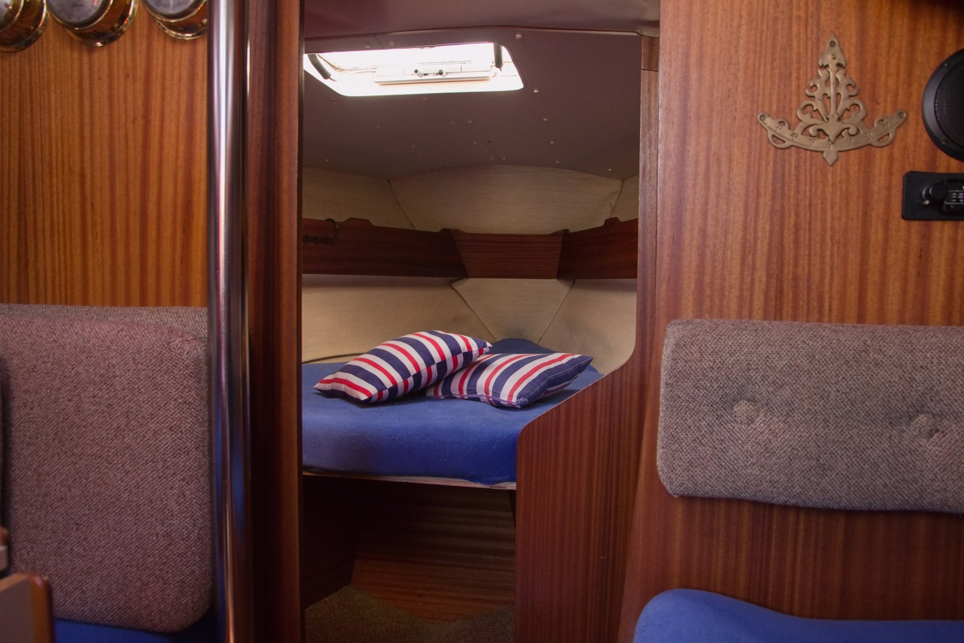 Plujeme na luxusní jachtě s výbornými jízdními vlastnostmi od renomovaného francouzského výrobce, firmy Jeanneau. Nabízí prostorný interiér i kokpit s úložnými prostory, nemá záďovou kajutu. Oddělené chemické WC, zabudovaný dieselový motor s ovládáním v kokpitu. Plachetnice má oddělenou příďovou kajutu (spaní pro 2 osoby). Po rozložení sedačky v salonu přespí další 3 osoby. Celkem tedy na plachetnice přespí max. 5 osob. Ovládání všech plachet je stažené do kokpitu, loď je vybavena hloubkoměrem a rychloměrem. Samozřejmostí je vybavení pro vaření a stravování na palubě.
