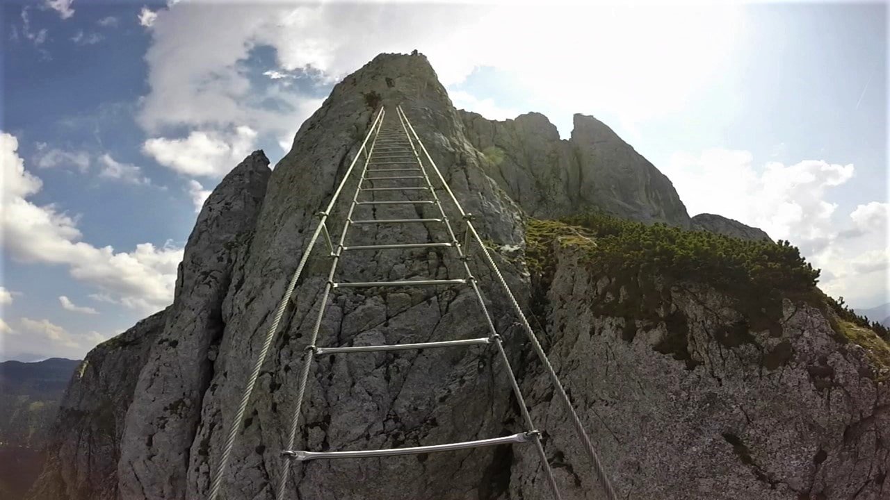 Donnerkogel se nachází v pohoří Dachsteingebirge u jezera Gosausee. Ferrata vede až na vrchol Grosse Donnerkogelu do výšky 2055 metrů, z vrcholu se nabízí nádherné výhledy na jezero a na masív Dachsteinu včetně jeho nejvyššího vrcholu. Obtížnost ferraty je hodnocena stupněm C/D, dle mého názoru, je to odpovídající. Vrcholem ferraty je 40 metrů dlouhý lanový žebřík, úžasný zážitek.