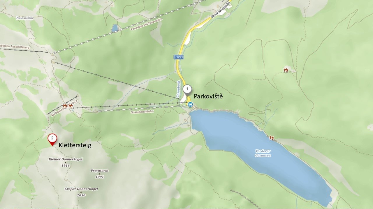 Parkujeme na velkém parkovišti u dolní stanice lanovky Gosaukammbahn. Od parkoviště se můžete vydat pěšky nebo lanovkou, která vás vyveze do výšky 923 metrů. Určitě doporučuji zvolit lanovku, ferrata je poměrně dlouhá a budete potřebovat dostatek sil na zdolání. Od horní stanice lanovky vyrážíme směr Gablonzer Hütte a dále pokračujeme cca 20 minut po značené cestě k nástupu na ferratu.