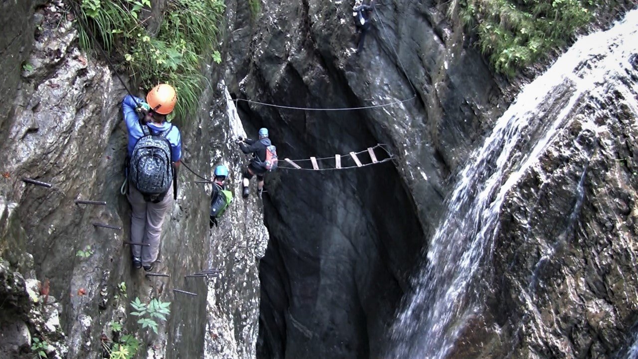 V zahraničí doporučujeme dětské ferraty, ale pokud víte, jak vybavení bezpečně používat, můžete se vydat i na úžasný Drachenwand u jezera Mondsee. Nejnáročnější část najdete sice až na konci, ale nejedná se o nic náročného. Možná pro vás bude největší výzvou lanový most. Sestup může být za mokra nebezpečný.