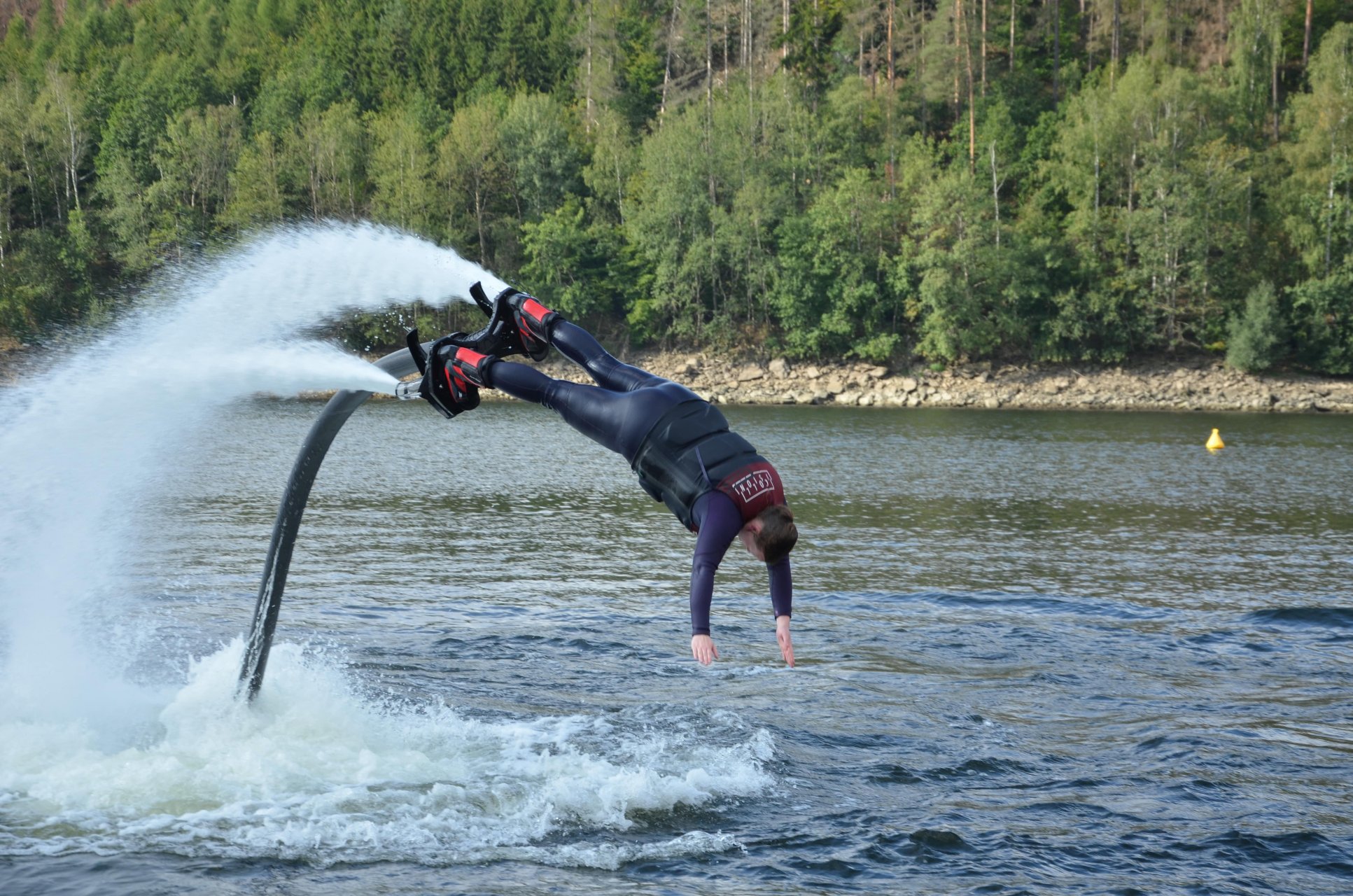 A když už jsme dole, tak pojďme ještě níž a to rovnou do jeskyně. V Moravském krasu je ráj pro vyznavače speleologie a jeden z takových zážitků si můžete vyzkoušet. Speleo ferrata se 40 metrů hlubokou propastí je adrenalinový zážitek, který vás zasvětí do práce speleologa, tedy pokud se to prací dá nazývat. Pokud si na speleo ferratu netroufáte, zkuste speleo únikovou hru. Velmi netradiční zážitkem je flygoarding na Dalešické přehradě. Tento úžasný zážitek vám umožní létat nad vodou a skákat ve stylu delfínů.