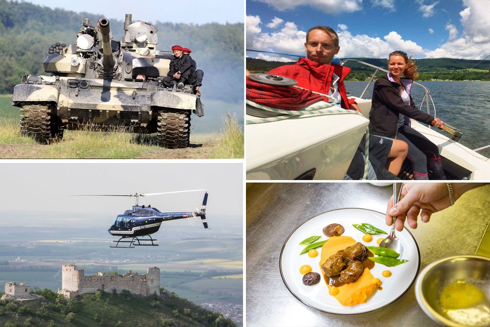 Pro adrenalinové šílence je tu tradiční bungee jumping nebo tandemový seskok. Pro celou rodinu kromě únikovek, doporučujeme jízdu BVP v Milovicích nebo vyhlídkové lety letadlem. a nezapomenutelný let balónem. Pro automobilové fanoušky a fanynky máme velký výběr supersportů a dalších adrenalinových jízd a to především úžasná jízda Tatrou Truck Trial a rally zážitky. Adrenalin a obrovskou porci zábavy nabízí akrobatický let nebo třeba pilotování letadla. Je libo něco velkého? Co třeba rovnou jízda formulí. I v této cenové relaci si můžete vyzkoušet neuvěřitelně reálné simulátory letadel.