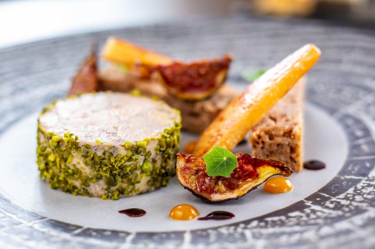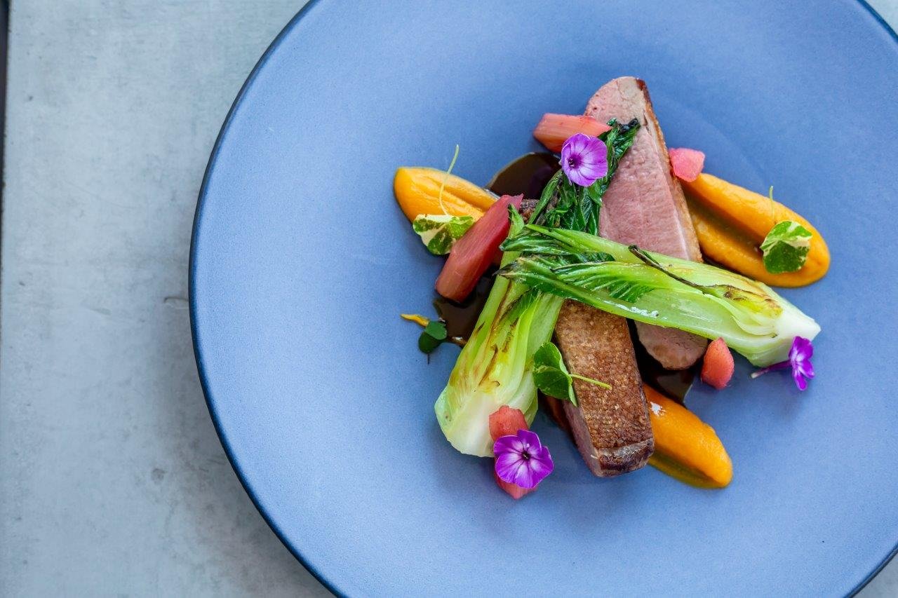 HLAVNÍ CHOD Filet candáta s pyré z pečené cibule, máslovou kapustou, marinovanými cibulkami, praženými lískovými oříšky a zálivkou se zázvoru, citronu a medu nebo Kachní prso s petrželovým pyré, pečeným celerem, nakládaným rakytníkem, slámou ze smaženého pórku a demi glace