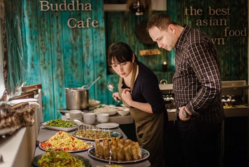 Tým profesionálních kuchařů pro vás připraví jídlo podle tradičních receptů, které nasbírali při toulkách po Asii. Přes osm let se toulali po Asii, aby vám tuto výjimečnou kuchyni mohli přiblížit. Učili se od pravých thajských babiček, které vaří již od útlého dětství. Vybrali jejich nejlepší starobylé recepty a přizpůsobili je k obrazu Café Buddha. Během této cesty získali dvě světová ocenění. Šéfkuchaři Café Buddha – thajská babička „Lucky“, Sofie Smith, Marek Partl a Štěpán Návrat – Vám vzkazují: „Připravíme pro Vás pravou gastro-zážitkovou cestu Asií, ochutnáte starobylé „ancient“ recepty thajských babiček i moderní „pan-asian“ jídla ovlivněné umem Sofie Smith.