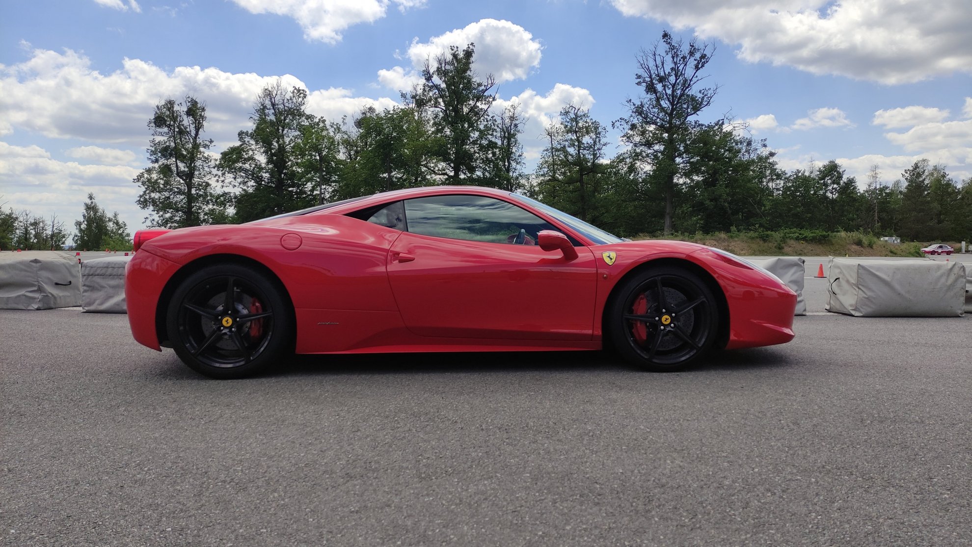 Nádherné červené Ferrari, které pohání zážehový osmiválec o výkonu 570 koní, zrychluje z 0 na 100 km/h za 3,4 sekundy a to už je pořádné adrenalinové zrychlení :-). Precizní automatická sedmi stupňová převodovka je společně se zvukem motoru, koncertem pro uši.