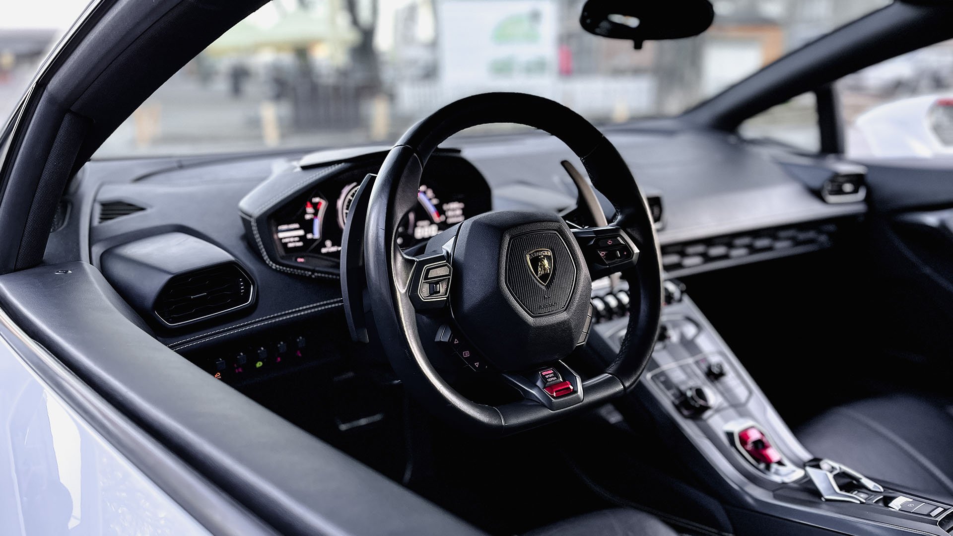 Lamborghini Huracán pohání poctivý deseti válec, který disponuje výkonem 610 koňských sil. Zrychlení z 0 na 100 km/h za adrenalinových 3,2 sekundy vás zarazí do sedačky😀. Lamborghini má pohon všech čtyř kol, převodovka automatická a samozřejmě naprosto přesná.