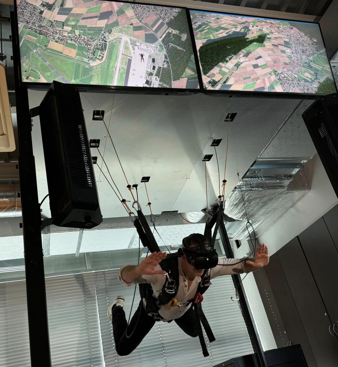 Simulátor seskoku padákem s využitím virtuální reality, naprosto reálný pocit seskoku pomocí trenažeru simulující volný pád, na kterém trénují profesionální parašutisté. Bojíte se skočit tandemový seskok, vyzkoušejte si to na nejlepším trenažeru na světě.