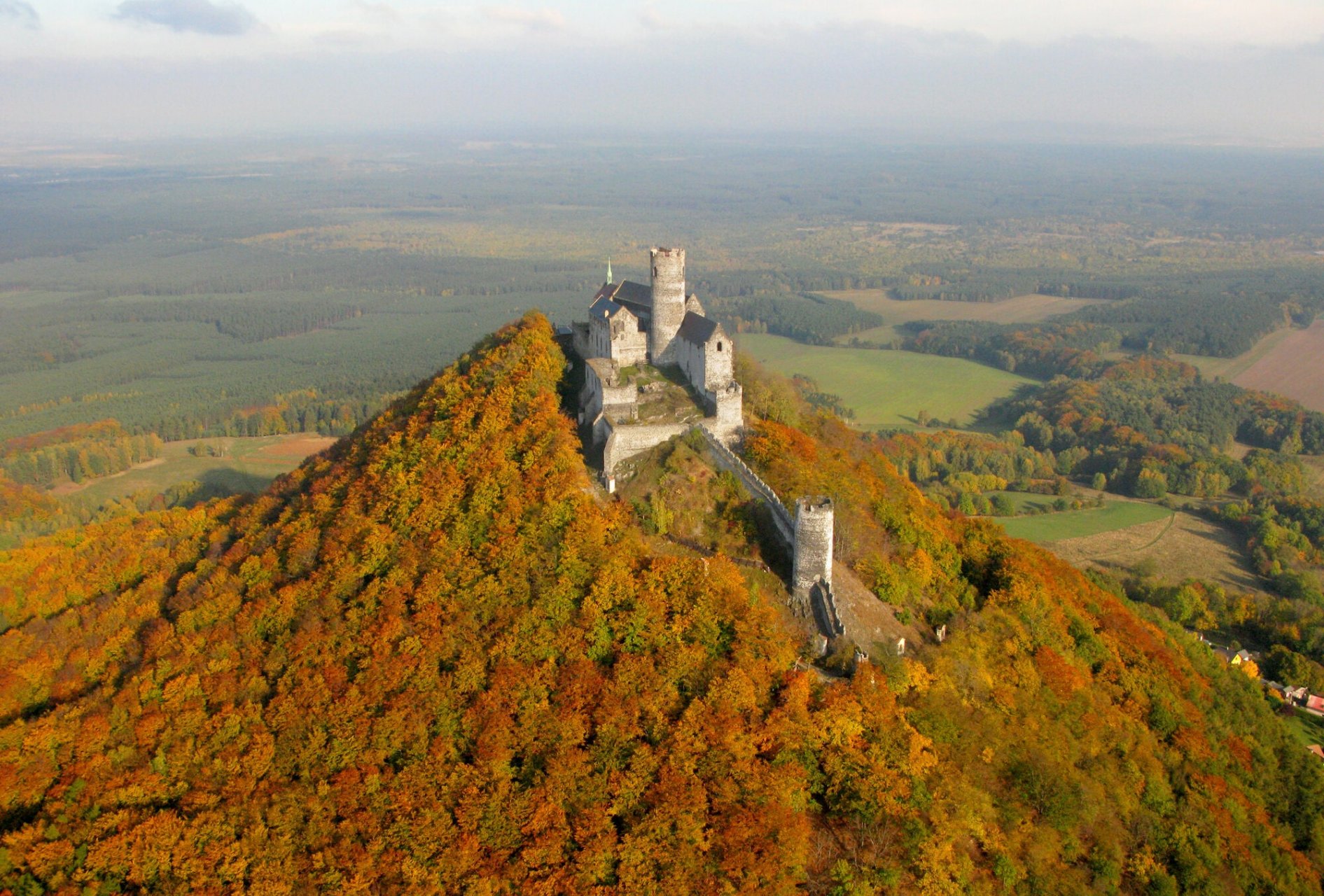 60 minut letu: zámek Mělník - hrad Kokořín - hrad Helfenburk - Milešovka - hrad Hazmburk - vodní hrad Budyně