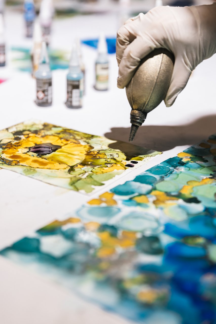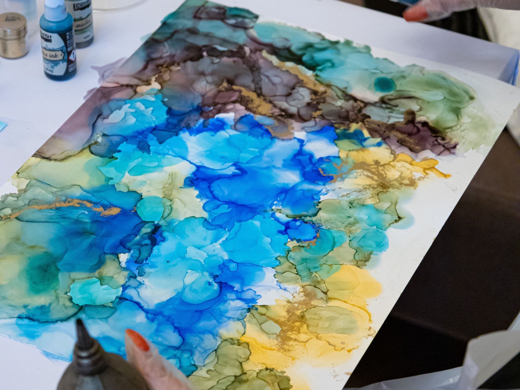 Ze všeho nejdříve si budete moct prohlédnout několik inspiračních obrázků. Techniku si navíc nanečisto vyzkoušíte, abyste pochopili, jak lihový inkoust pracuje. Je to právě jeho lehké nevyzpytatelnost, co dá pod vaší taktovkou vzniknout jedinečným abstraktním mistrovským dílům. Na závěr si obraz sami zarámujete.