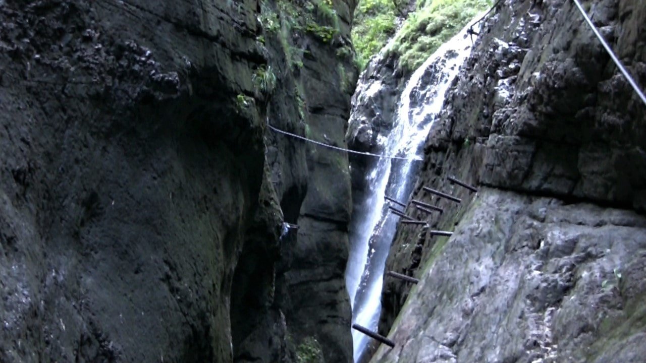 Přímo u jezera Gosau si můžete vyzkoušet krátkou, ale zajímavou ferratu Lasserer, jen pozor na lanový most, který je opravdu hodně dlouhý a pro někoho to můžete být trochu náročnější. Pro začínající lezce lze doporučit zábavný Postalmklamm klettersteig v soutěsce, jediné obtížné místo je přeskok viz foto. Další část je celkem náročná, ale může se obejít.