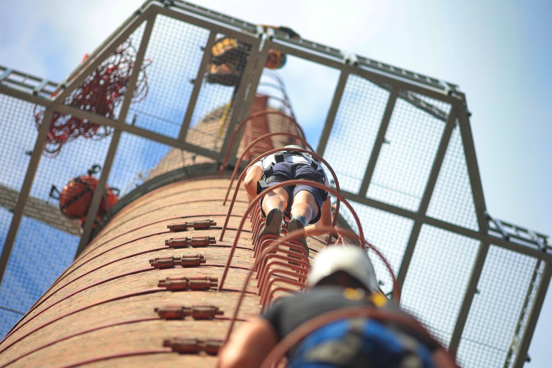 Bungee jumping z komínu má jednu velkou výhodu, jedná se totiž o 2 zážitky v jednom. Než skočíte, musíte se dostat na plošinu, která je ve výšce 26 metrů a pokud si na to troufnete, můžete před skokem vylézt na úplný vrchol komínu, který je ve výšce 46 metrů! Nemusíte se bát, na cestu budete vybavení ferratovým setem.