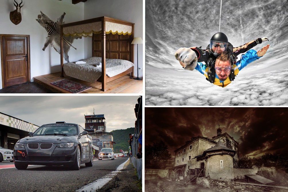S voucherem na 4 000 Kč dosáhnete i na poybyty, dokonce i na Tančící dům s luxusními výhledy. Pro začínající řidiče doporučujeme školu smyku. Máte rádi adrenalin, tak co nezkusit největší výzvu v podobě tandemového seskoku.