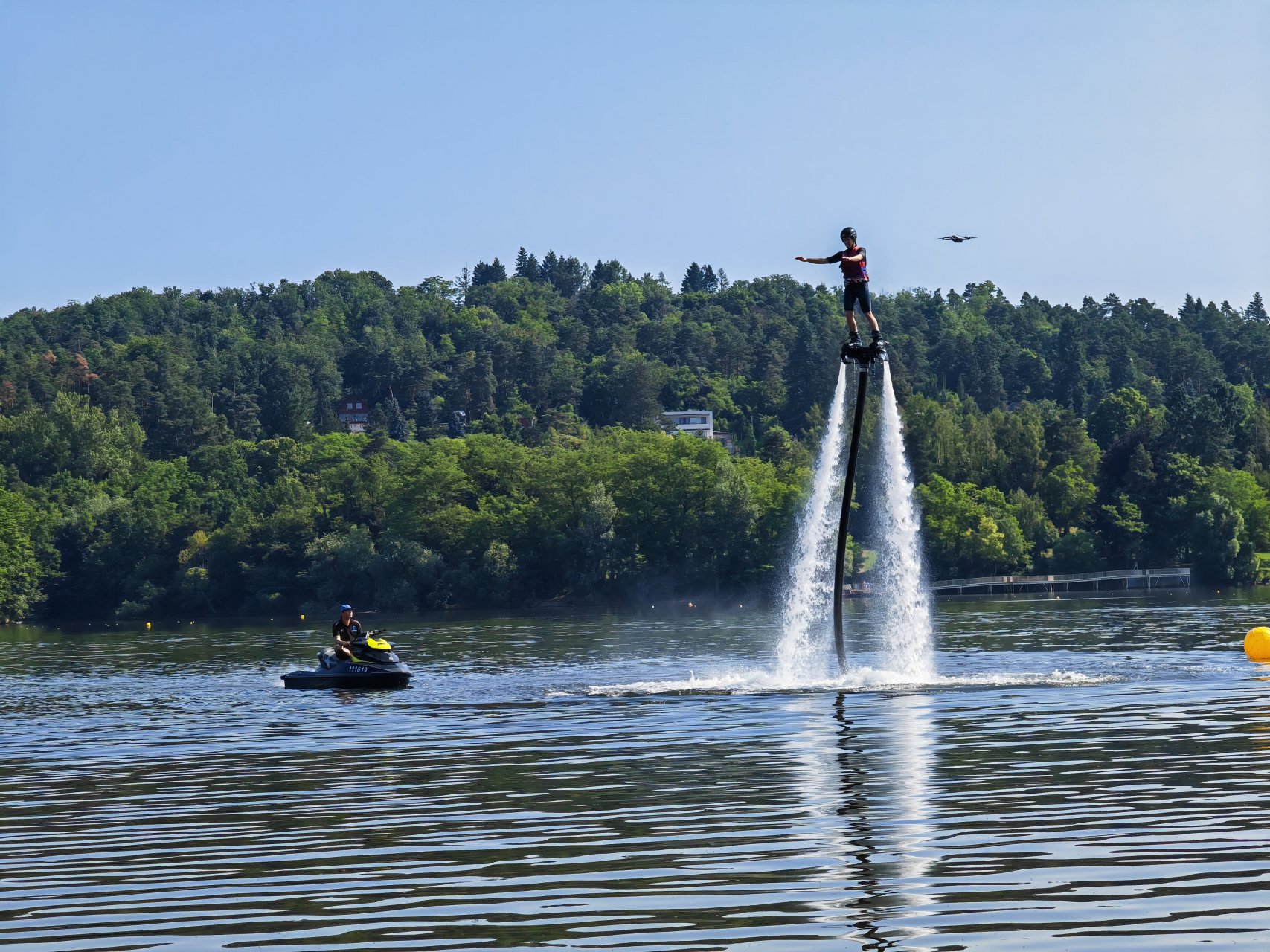 Flyboarding není náročný jak na první pohled vypadá, zkušený instruktor poradí správnou techniku letu. Jedná se o zcela bezpečný sport, nicméně každý účastník musí umět alespoň trochu plavat. Doprovod je povolen v rozumné míře, od břehu jezera může celý průběh letu pozorovat.