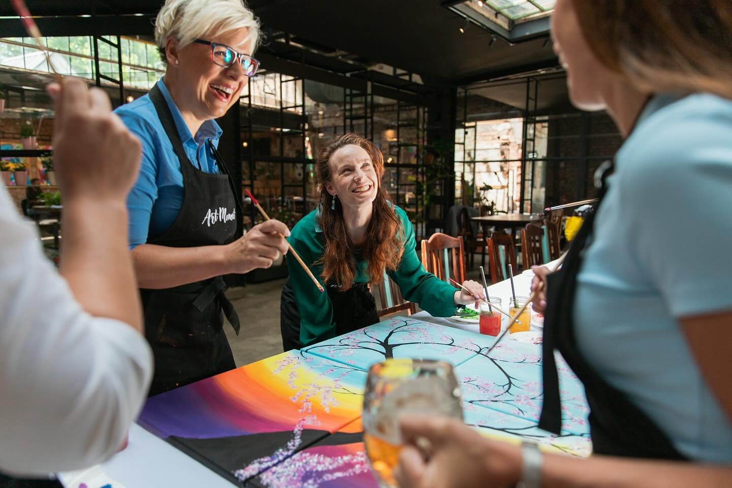 Říkáte si, že obraz namalovat nezvládnete. Co když vám řekneme, že za tři hodiny skvělé zábavy v unikátním prostředí namalujete obraz, o kterém se vám ani nesmělo. Naše lektorky z vás profesionály neudělají, ukáží vám však finty a dají užitečné rady... S námi zvládnete namalovat obraz, který uchová vzpomínky na momenty večera s jedinečnou atmosférou.