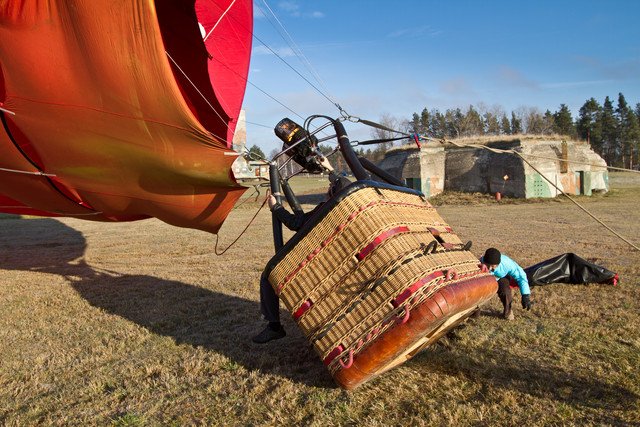 A jak probíhá samotný let? Sestavíte koš, vytáhnete balón z vaku a pak ho začnete plnit vzduchem z ventilátoru. Je jen na vás, jestli se rozhodnete pilotovi s přípravou balónu pomáhat. Když se balón naplní studeným vzduchem, pilot ohřeje vzduch hořákem a balon se zvedne. Jakmile bude balón připraven k vzletu, budete vyzvání k nástupu do koše a můžete letět...