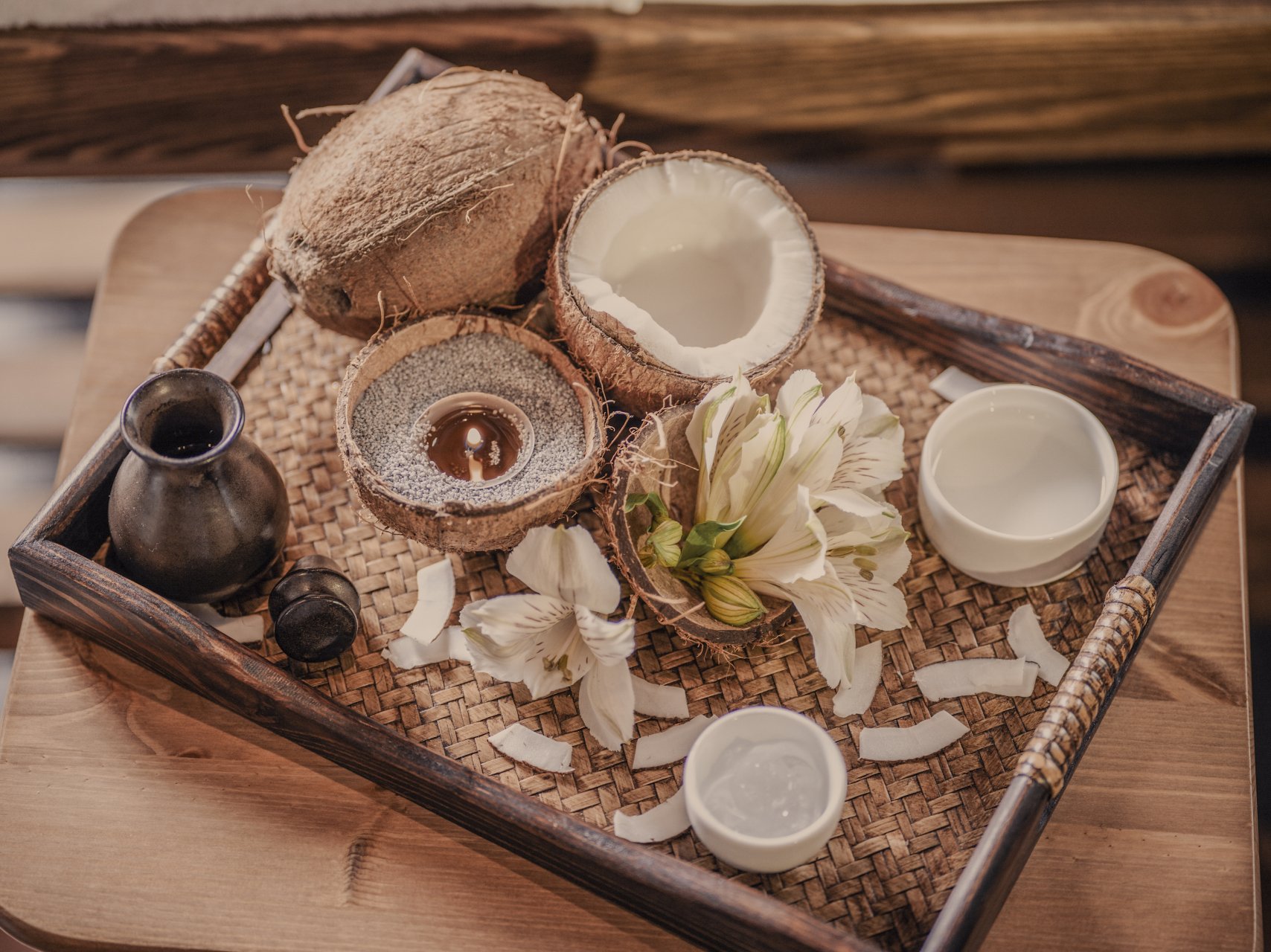 Kokos zanechává vaši pokožku sametově jemnou, pružnou a zdravou. Vaše tělo se zbaví přebytečného nervové a svalové vypětí. Po relaxační kokosové masáži následuje obličejová masáž přírodním kolagenem, která vyhladí jemné i hlubší vrásky a dodá vaší pleti potřebný jas.