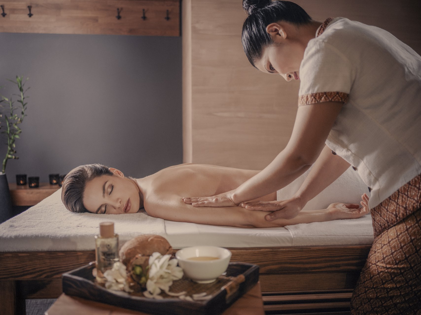 Pro zahřátí vašeho těla je procedura zahájena klasickou thajskou masáží, po níž se již můžete těšit na příjemnou relaxační olejovou masáž. Při masáži využíván panenský 100% bio kokosový olej, který se dnes těší stále větší oblibě právě díky blahodárným účinkům na pleť. Máte-li citlivou kůži, je právě panenský kokosový olej tím nejlepším, co můžete vaše tělu dopřát.