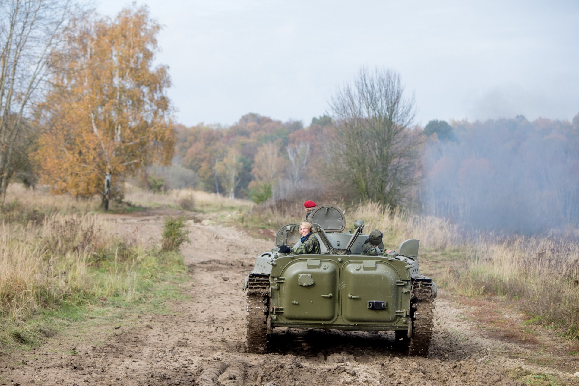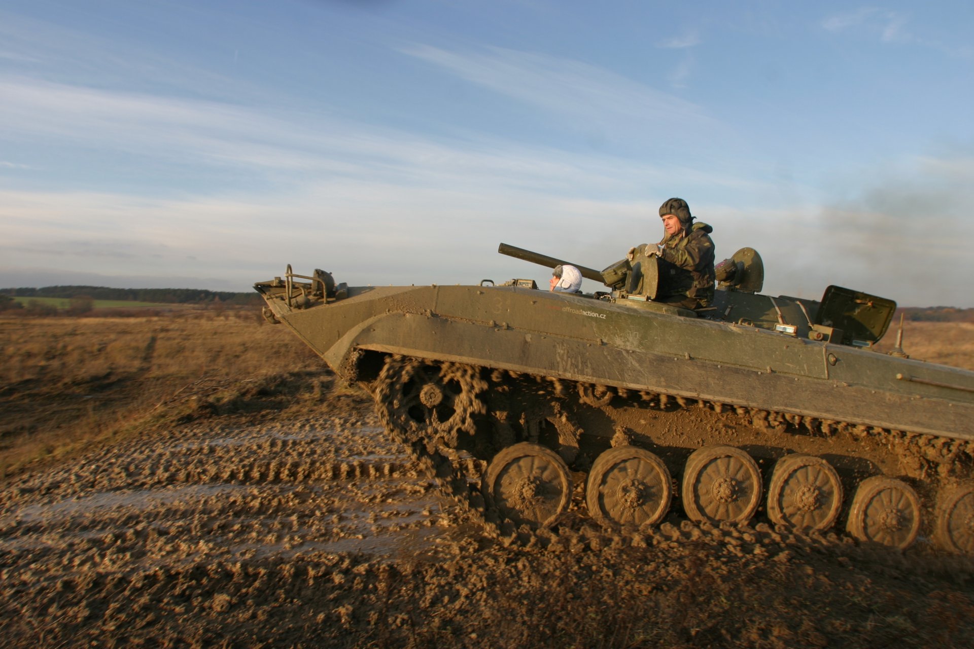 Super jízda v bojovém vozidle (svezení i řízení) za účasti sympatického pana instruktora. Na zážitku přidaly hluboké jámy plné vody po dešti, se kterými si BVP samozřejmě hravě poradilo :-)