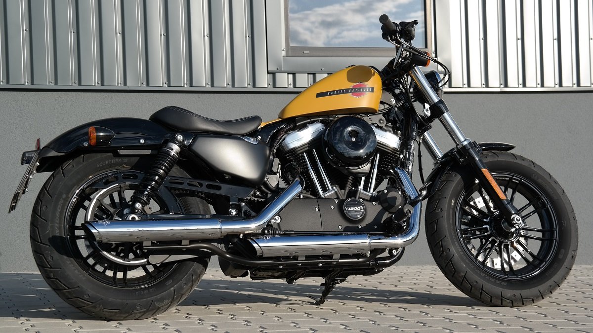 Americká ikona Harley Davidson Forty-Eight je mohutná motorka s designem ze 70. let. Motorce dominuje nádrž ve tvaru buráku a široká přední pneumatika se speciálním pláštěm Michelin zhotoveným přímo pro Harley-Davidson.