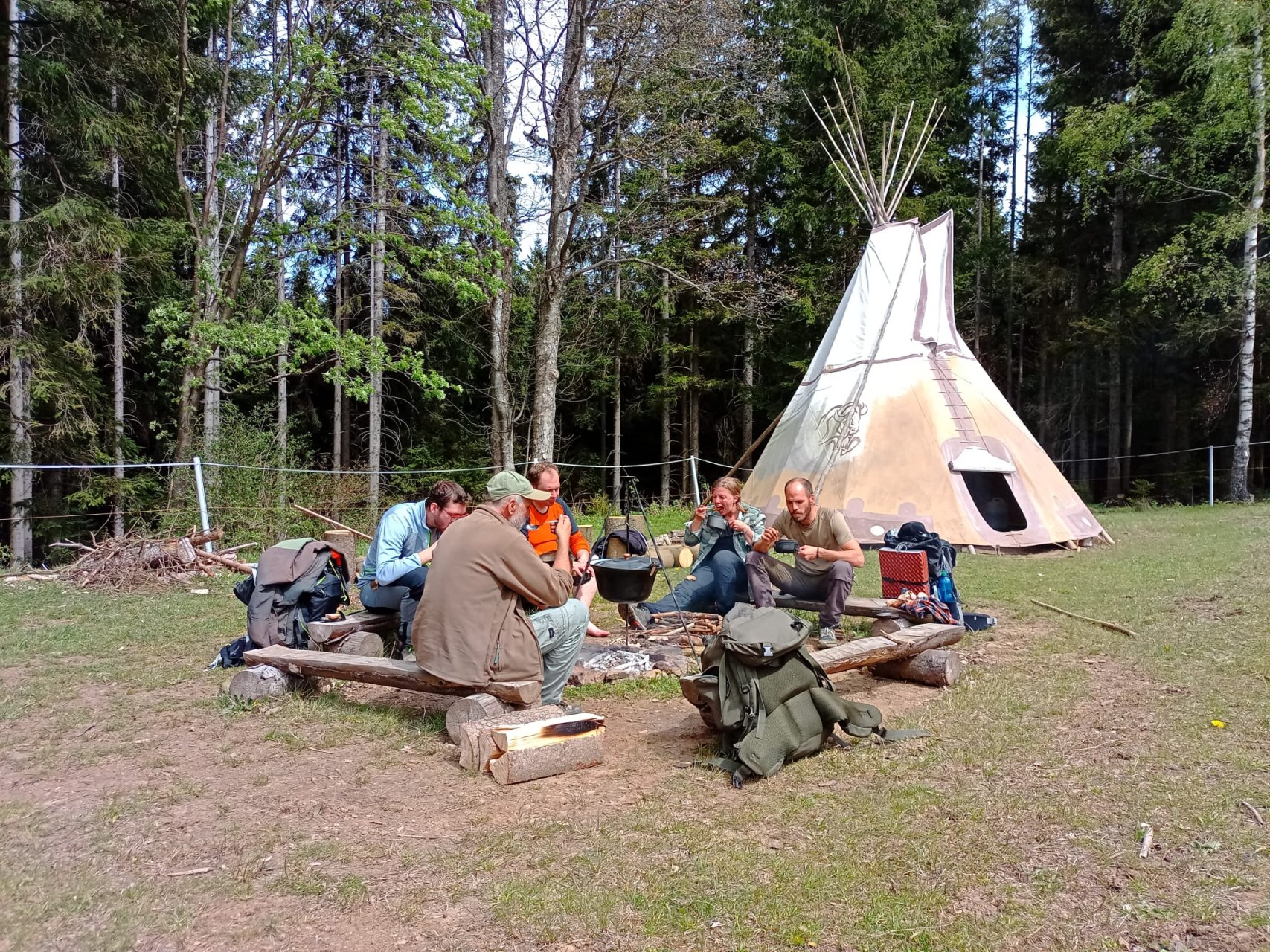 Teepee je jednoduché zařízení bez postelí podlahy a koupelny. Vedle teepee se nachází suchý záchod a vykoupat se musíte v malé říčce na pozemku, teplou vodu nečekejte😁Spaní je na vlastní karimatce a ve vlastním spacáku.